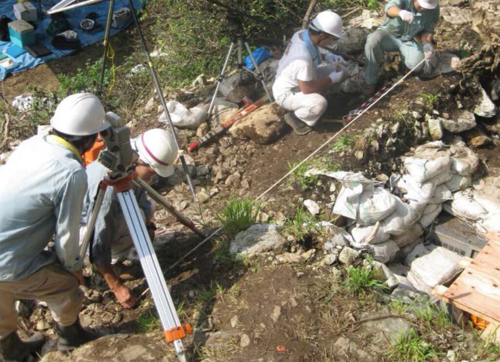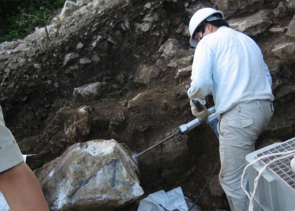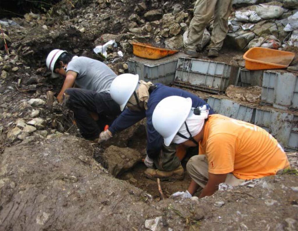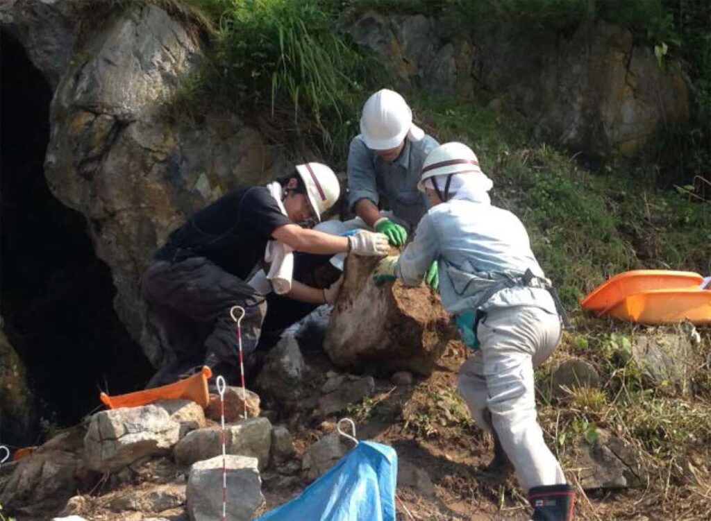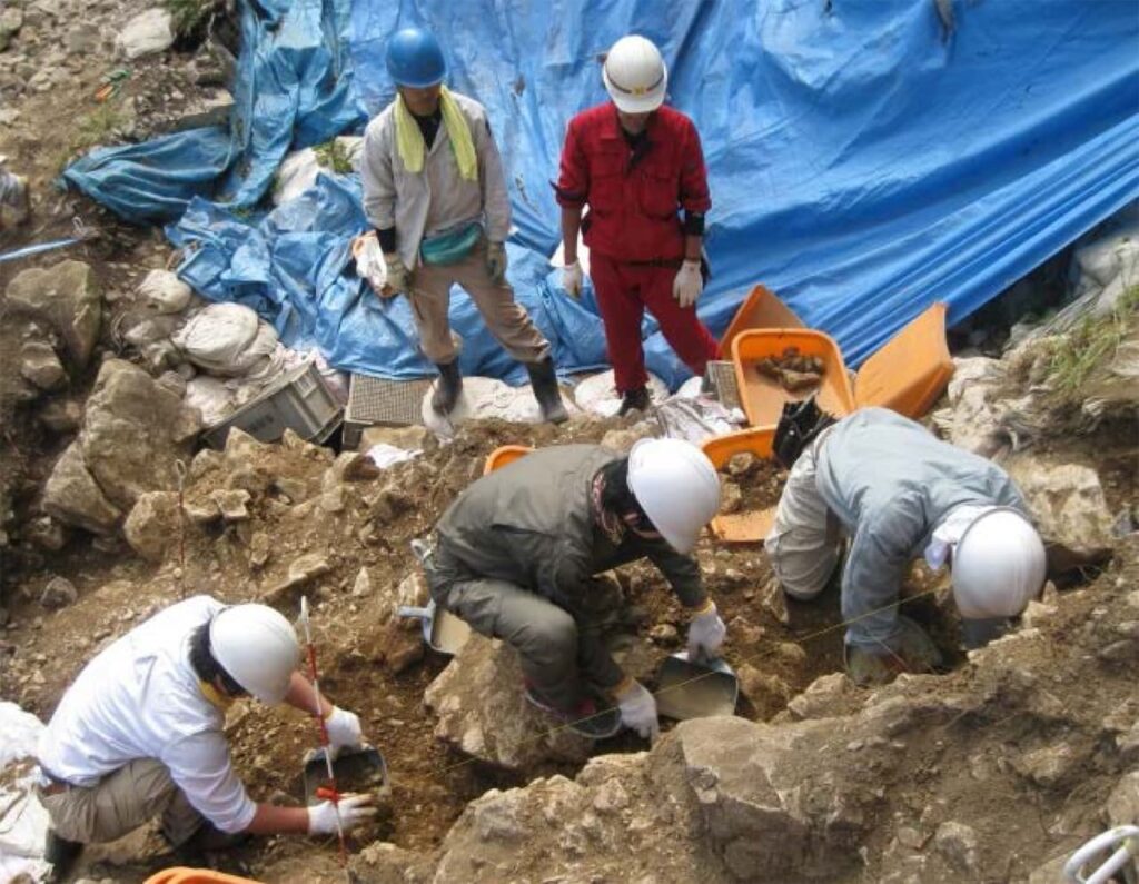 フォトレポート 尻労安部洞窟遠景(南西から) 洞窟西側の景観 洞窟全景(防護ネット設置前) 洞窟全景(防護ネット設置後) 洞窟全景(2002年度発掘調査開始前) 桑畑山山腹南西斜面の石灰岩露頭 絶滅動物化石が発見された坑道 坑道より発見されたオオツノシカの下顎骨 桑畑山南麓から望む猿が森砂丘 2002年度E-H10,11区Ⅳ層上面(南から) 2002年度E-H10区東側断面 2003年度D-H12区西壁断面 2003年度H10区北壁断面 2004年度F-H区Ⅷ層上面(南から) 2004年度FG11区ⅩⅡ層上面(南東から) 2005年度EF12区ⅩⅢ上面(南から) 2006年度CF13,CD12区(東から) CD12区断面(2006年度、東から) CD12区ⅩⅤ,ⅩⅥ層断面 2007年度B11-14区Ⅹ層上面(東から) 2007年度B14区Ⅱ層より出土した縄文時代の土器片と動物遺体 2008年度DE12-13区Ⅹ層上面(南から) 2008年度DE12-13区ⅩⅣ層上面(南東から) 2009年度AB12-14区ⅩⅢ層上面(南東から) 2009年度AB12-14区ⅩⅣ層上面(南から) 2009年度AB12-14区ⅩⅤ層上面(北から) 2009年度AB14区西壁 2011年度BD10,11区ⅩⅣ層上面(南西から) テフラ分析用土壌サンプルの採取風景 2012年度EF9,10区ⅩⅤ層上面(南西から) 2009年度B12区ⅩⅣ層出土動物遺体 2012年度D12区ⅩⅣ層出土動物遺体 2012年度D13区ⅩⅣ層出土動物遺体 発掘作業 発掘作業 発掘作業 発掘作業 発掘作業 発掘作業 発掘作業 発掘作業 発掘作業 発掘作業 発掘現場における水洗選別作業 発掘現場における動物遺体の回収作業
